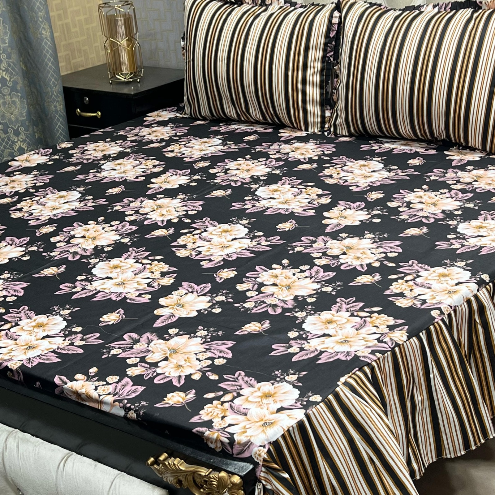 3 PCS King Size Frill Bedsheet Set – Cotton Fabric with 2-Sided Frill | Elegant & Soft Bedding