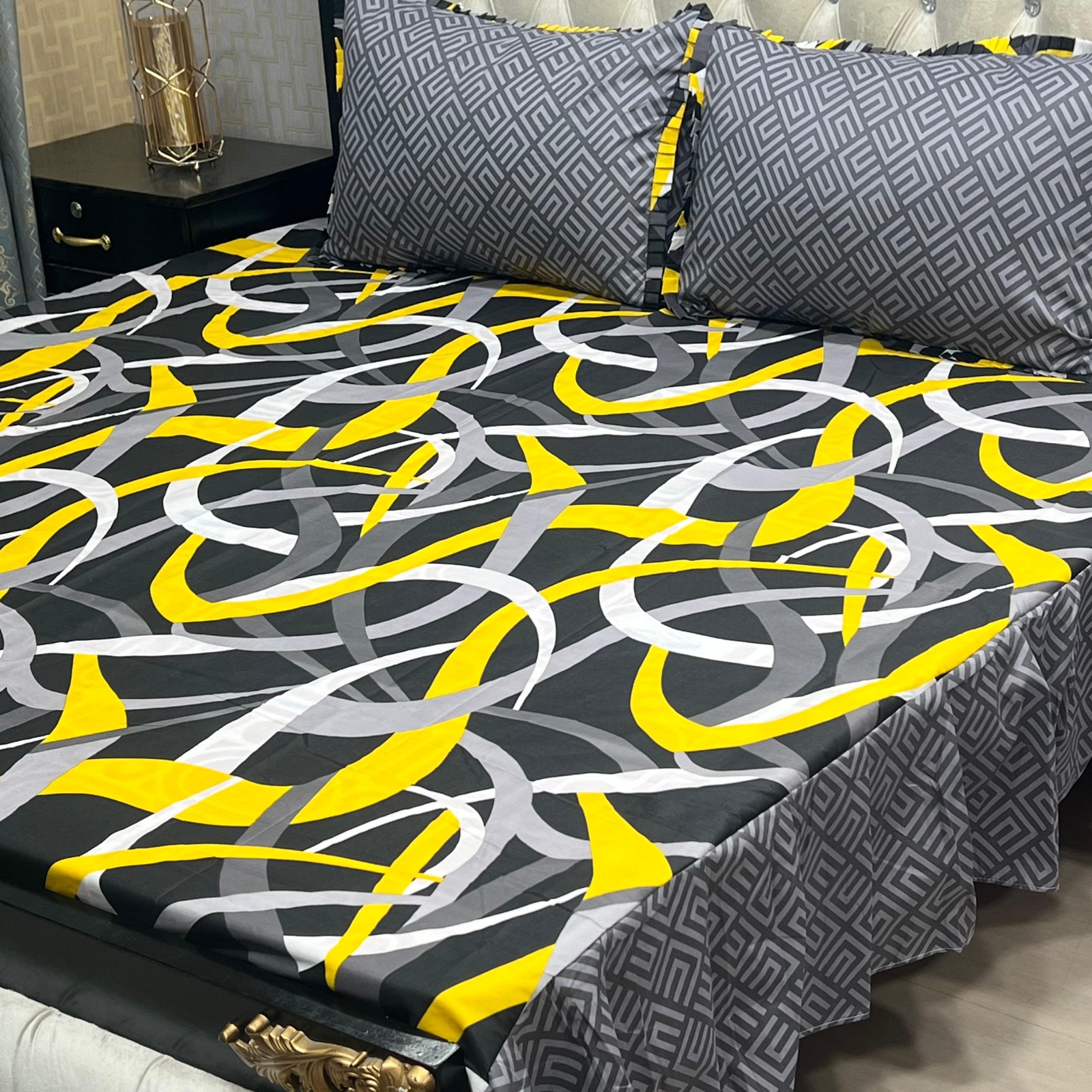 Upgrade your bedroom with our 3 PCS King Size Frill Bedsheet Set, beautifully designed with 2-sided frill borders and crafted from premium quality cotton fabric. This bedsheet set adds a touch of grace, charm, and softness to your room while offering complete functionality for everyday comfort.